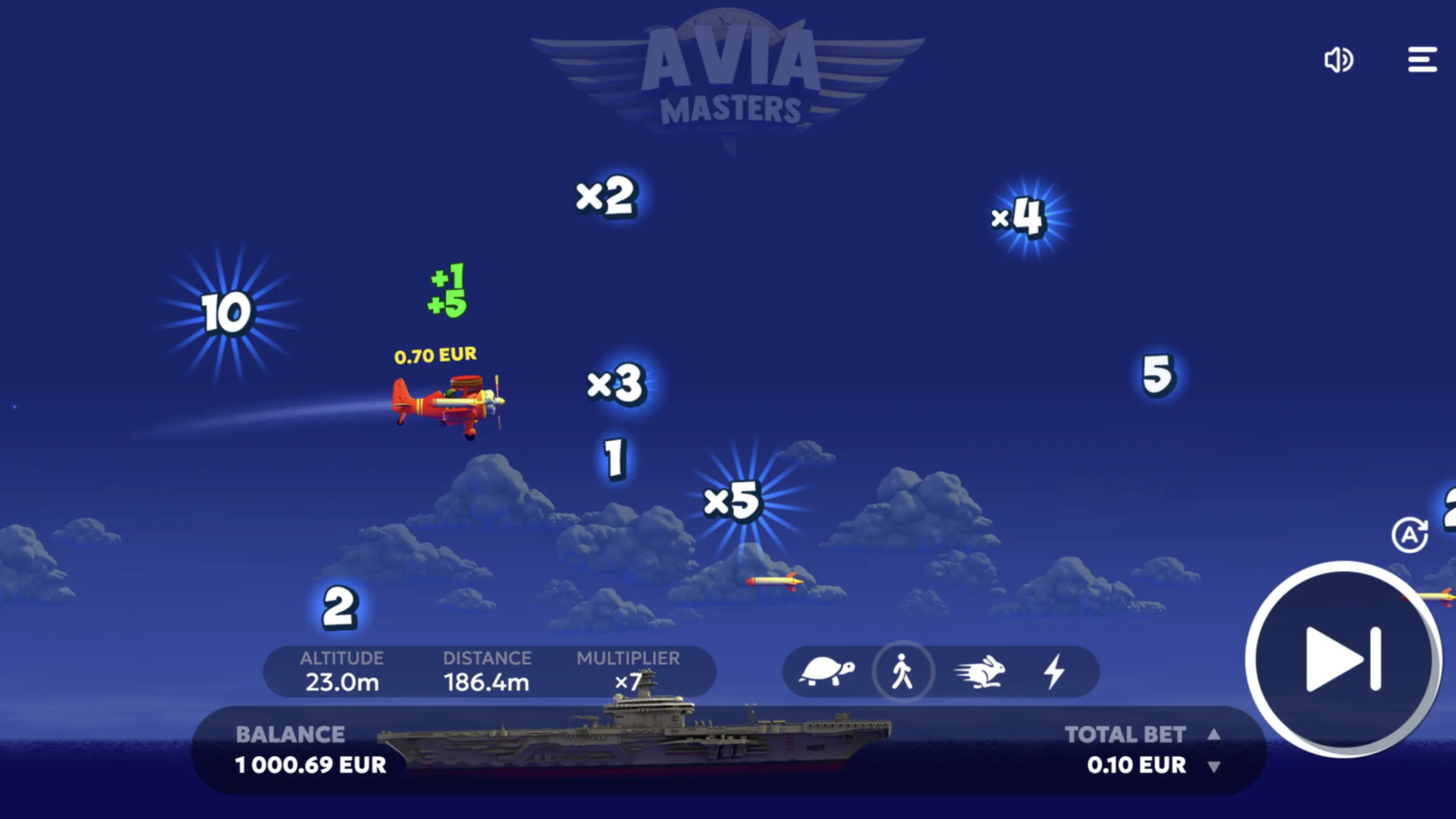 NĂ€r du startar en runda i Avia Masters slot lyfter planet automatiskt. Din insats multipliceras gradvis â ibland snabbt, ibland lĂ„ngsamt. Det gĂ€ller att klicka pĂ„ âCash Outâ innan planet kraschar. Jag gillar hur spelet kĂ€nns sĂ„ enkelt men Ă€ndĂ„ krĂ€ver mycket strategi.